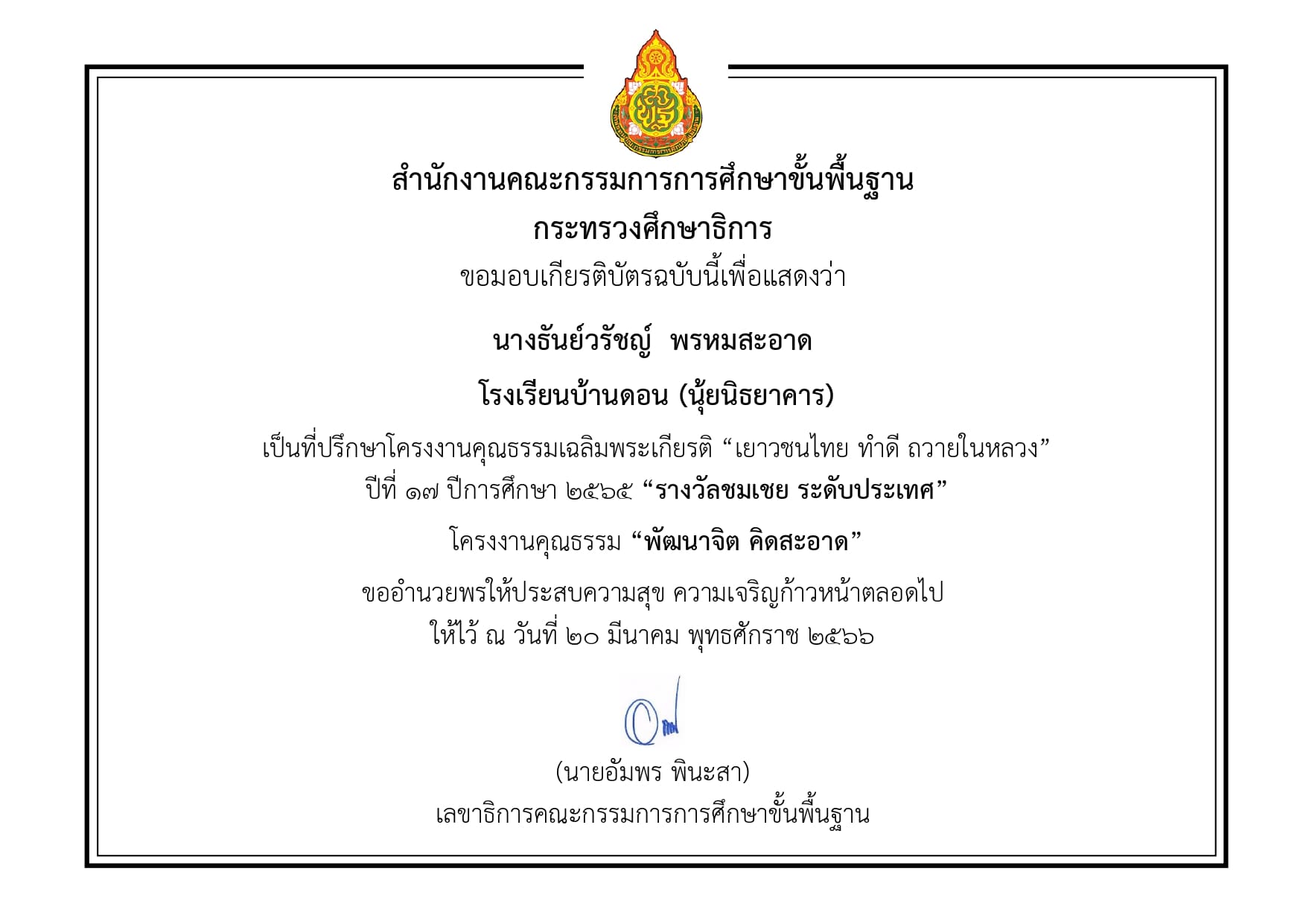 นางสาวธันย์วรัชญ์ พรหมสะอาด |